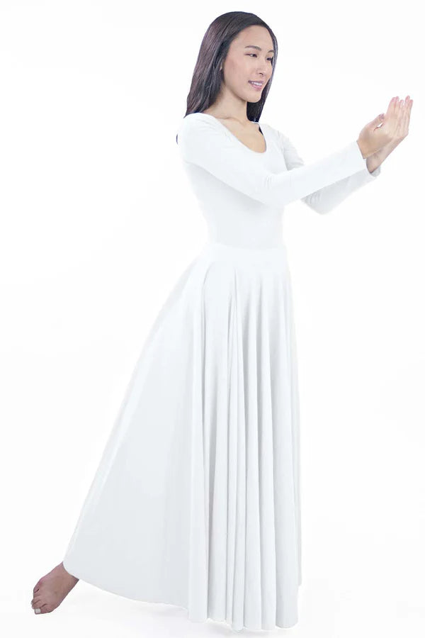 Flamenco/Liturgical long sleeve dress offers a perfect blend of stretch and modesty, allowing for comfortable praise, worship, and liturgical dance.